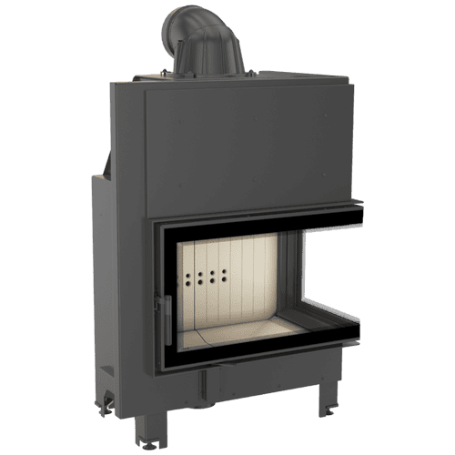 Повітряна камінна топка кутова для заміського будинку Kratki MBO - 15 кВт права, суцільногнуте скло