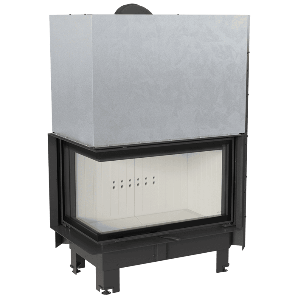 Сучасна кутова камінна топка для дачі з гільйотиною Kratki MBO - 15 кВт ліва суцільногнуте скло